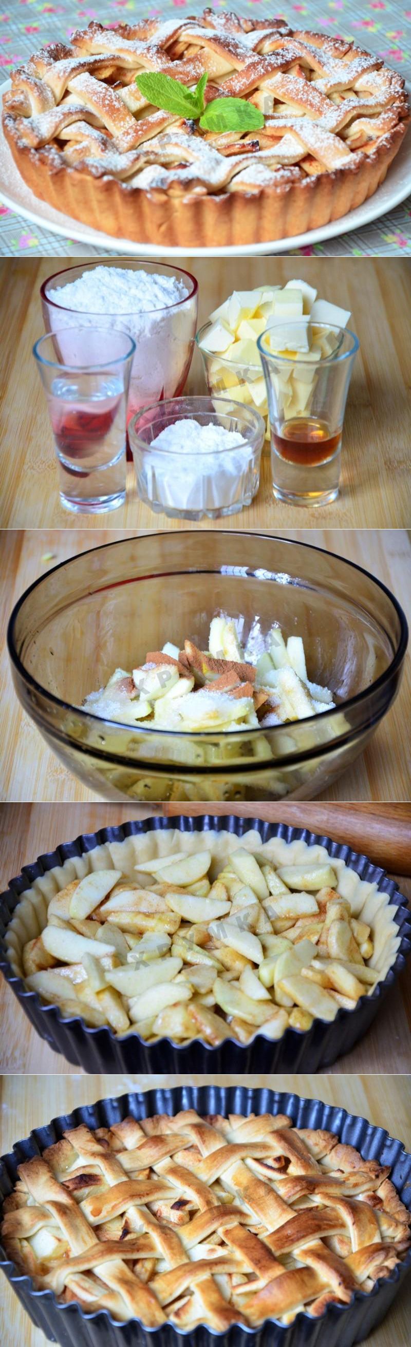 - Шаг 1: Как испечь американский пирог? Подготовьте продукты по списку. По желанию часть воды вы можете заменить на яичный желток, тогда тесто будет еще нежнее! Сливочное масло должно быть комнатной температуры, заранее выньте его из холодильника.Шаг 2: Тесто я замешивала в кухонном комбайне, но и вручную сделать это очень легко. В чашу комбайна просейте пшеничную муку, добавьте сахарную пудру и нарезанное на кубики сливочное масло.Шаг 3: Измельчите муку, масло и сахарную пудру в мелкую крошку. Если будете замешивать вручную, то или порубите смесь ножом или перетрите масло с мукой руками, но тогда действуйте очень быстро, чтобы масло от теплоты рук не начало таять. В масляную крошку добавьте ванильную настойку и часть воды.Шаг 4: Замесите тесто. Воду добавляйте малыми порциями до тех пор, пока тесто не начнет собираться в ком. (Всю воду сразу не добавляйте, вам может потребоваться больше или меньше воды!).Шаг 5: Готовое тесто скатайте в шар, слегка расплющите, заверните в пленку и отправьте в холодильник на 20-30 минут (лучше, конечно, оставить на час, но у меня всегда не хватает времени).Шаг 6: Пока тесто отдыхает, займемся начинкой. Яблоки помойте, очистите от кожуры и от сердцевинки. Нарежьте яблоки ломтиками.Шаг 7: Смешайте яблоки с корицей, сахаром и лимонным соком (по желанию можно добавить немного лимонной цедры) в отдельной посуде. Перемешайте. Если яблоки очень сочные, то добавьте 1 ст. л. крахмала.Шаг 8: Тесто разделите на 2 части. Одна часть при этом должна быть немного больше другой.Шаг 9: Большую часть теста раскатайте по размеру своей формы с учетом бортиков. Переложите в смазанную маслом форму, сделайте бортики. Сверху выложите яблочную начинку. Разровняйте.Шаг 10: Вторую часть теста раскатайте тонко, нарежьте на ровные полоски и в виде сетки покройте ими пирог. Краешки прищипите пальцами с бортиками пирога. Перед выпечкой по желанию (это совсем необязательно) смажьте пирог смоченной в молоке кисточкой. Так у него получится более яркая корочка.Шаг 11: Выпекайте в разогретой до 180С духовке около 30-40 минут (ориентируйтесь на свою духовку!). Готовому пирогу дайте слегка остыть, посыпьте сахарной пудрой и подавайте к столу.Шаг 12: Вкусно как в горячем виде с шариком мороженного, так и в холодном!Приятного аппетита!