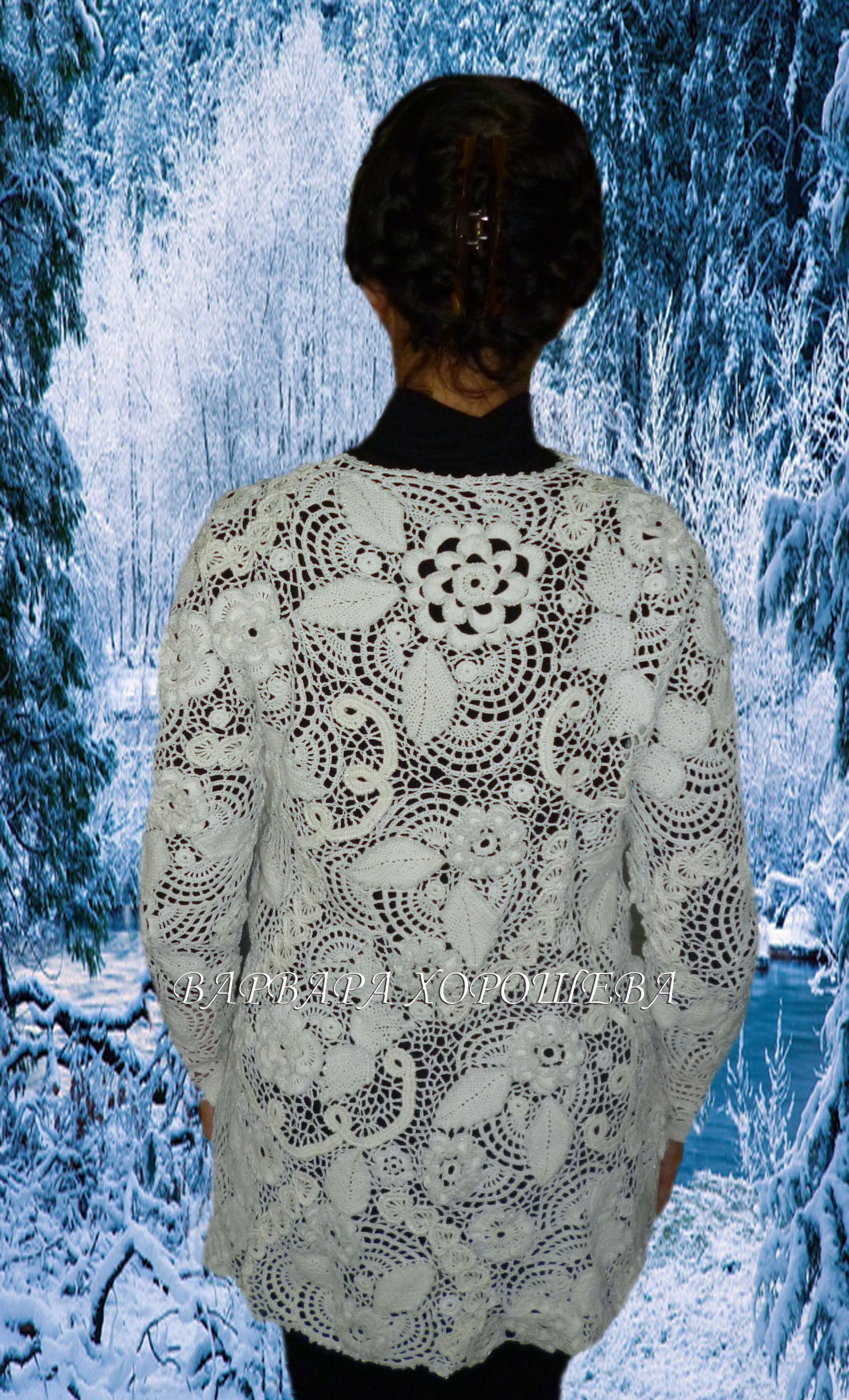 Кардиган "Сад снежной королевы". Авторская модель, выполненная крючком из хлопковой и хлопково-вискозной пряжи. Точное повторение невозможно. Сделаем похожую в любом цвете и размере. Такой кардиган будет отличным дополнением к маленькому черному платью, сделает Вас неповторимой на любой вечеринке.