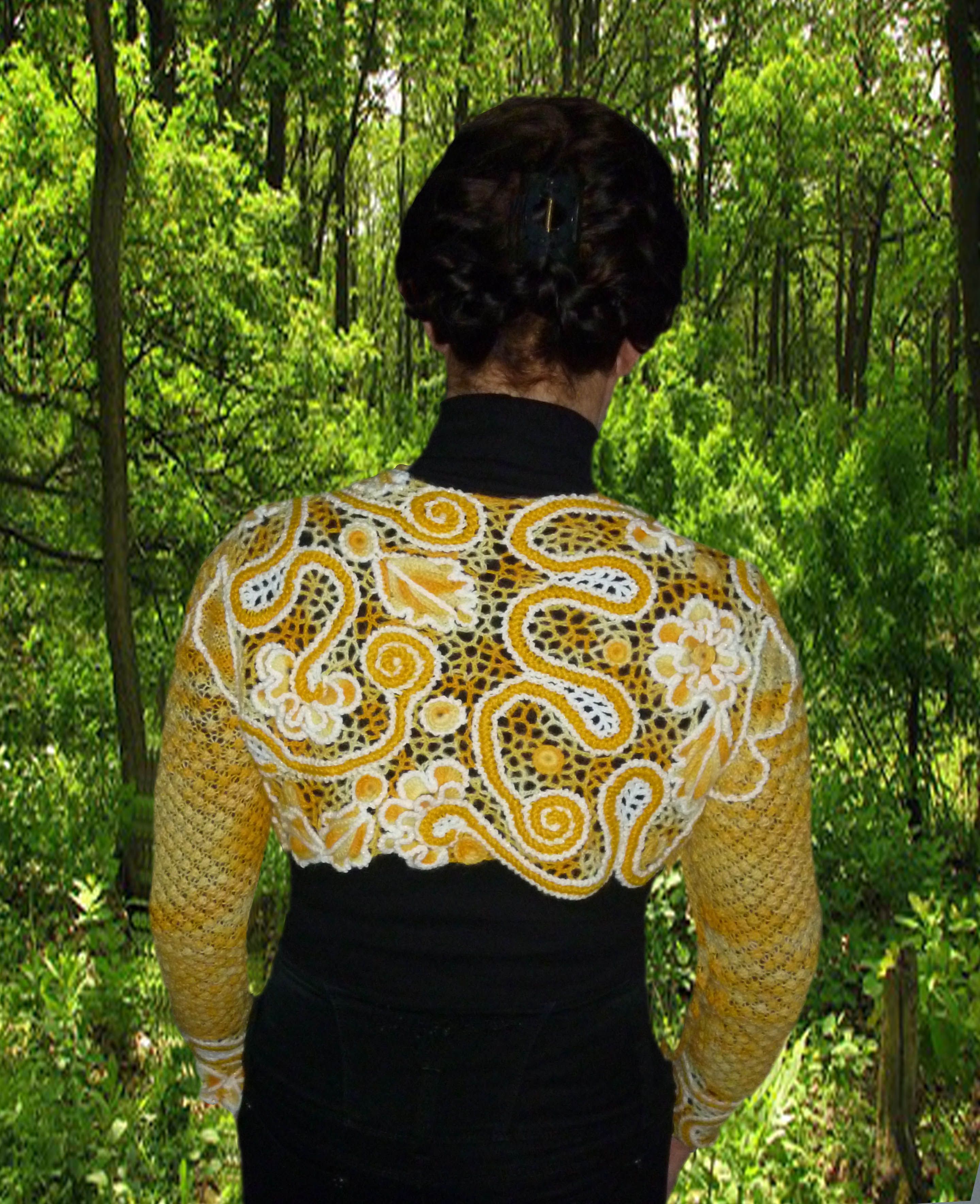 Болеро вязаное "Солнечные блики". Авторская модель ручной работы выполнена спицами и крючком из пряжи с содержанием мохера. Точное копирование невозможно. Болеро отлично украсит наряд и одновременно согреет.