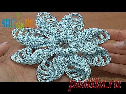 Вяжем крючком Урок 57 Часть 1 из 2 Вязаный цветок с объемными лепестками - YouTube