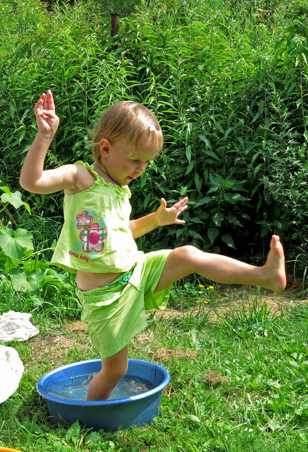 Утренняя зарядка и водные процедуры на даче.