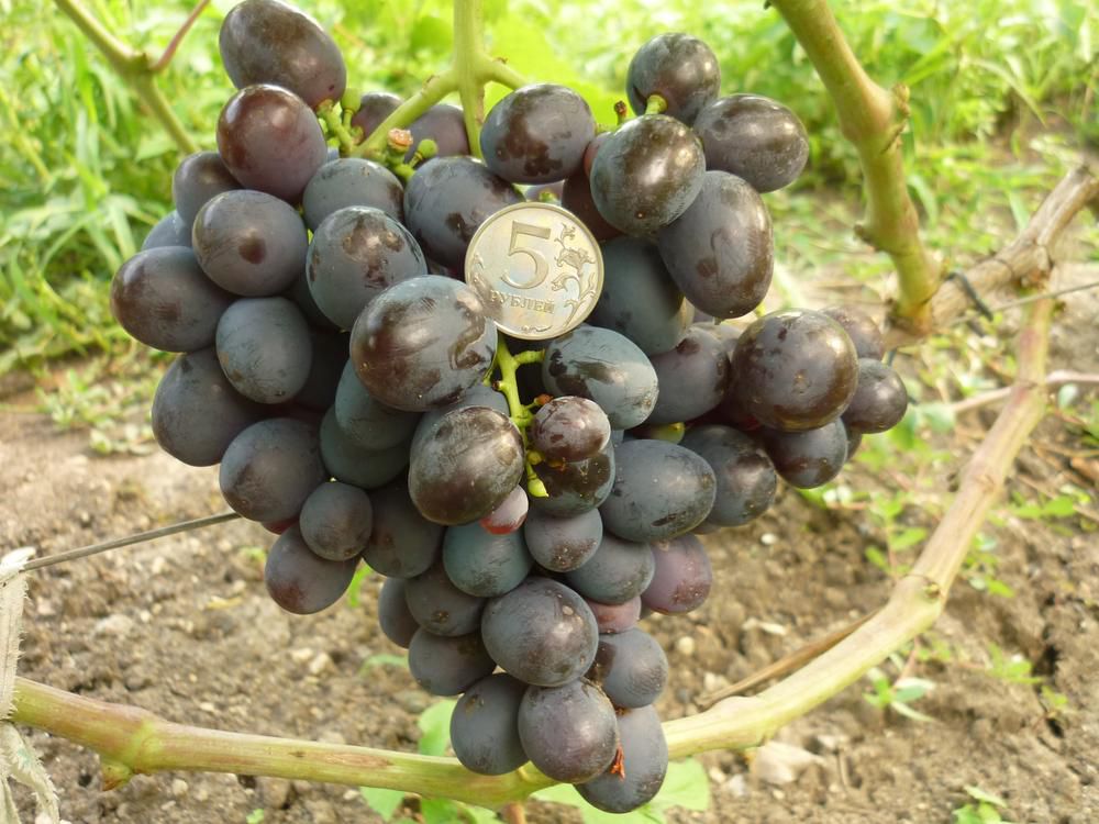 Новая столовая форма очень раннего срока созревания (90-100 дней). Гроздь очень крупная 700-1100г и более, на длинной ножке, средней плотности, покрыта густым пруиновым налётом.