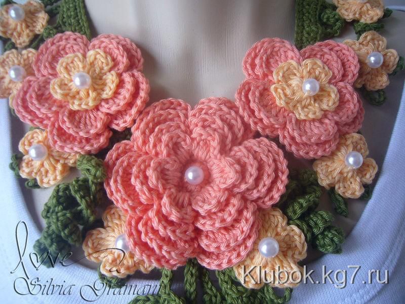 ВЯЗАНОЕ ЧУДО СИЛЬВИИ ГРАМАНИ. УДИВЛЯЙТЕСЬ, ТВОРИТЕ! Colar Miss Flor Laranja(МЕЖДУ ПРОЧИМ , СТОИТ 71 ДОЛАР) СДЕЛАЕМ?