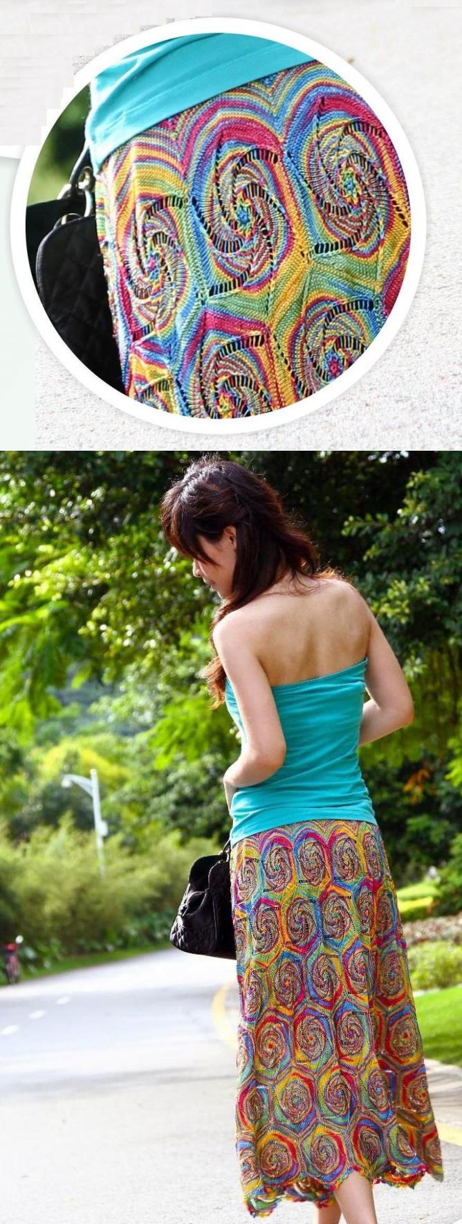 "Цветная спираль". Яркая юбка спицами и крючком. Схемы, мастер-классы.