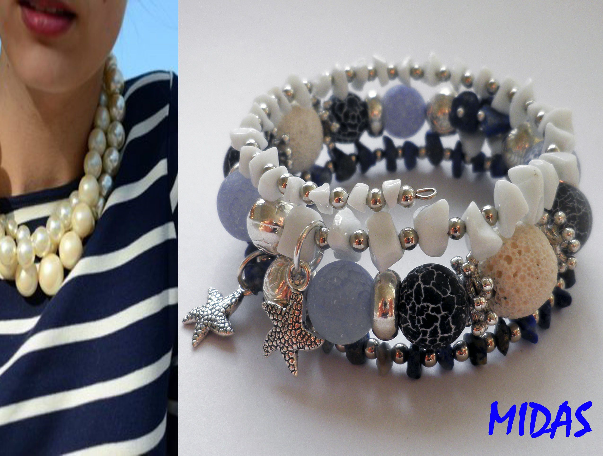Многослойный браслет из натуральных камней : круглые бусины синих оттенков агат-кракле , белые округлые бусины вулканическая лава , синие сколы - лазурит.