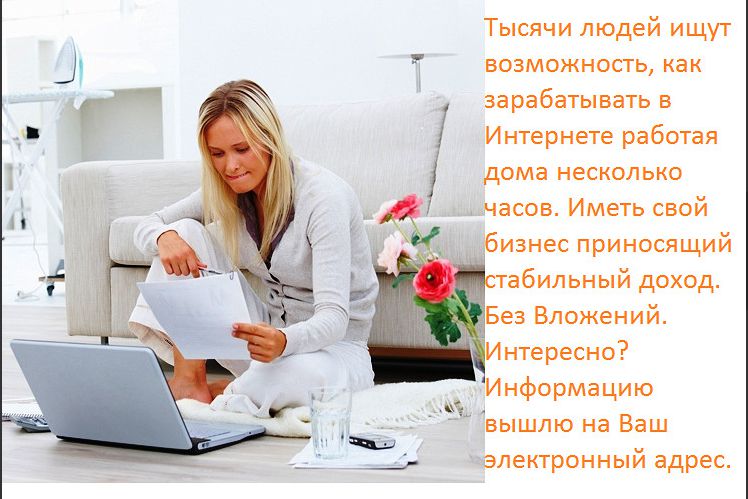 У каждого человека есть право выбора - жить в повседневной рутине серых будней или начать двигаться к своим целям! Для тех, кто ищет возможность изменить жизнь к лучшему, предлагаю домашний бизнес в интернете, доступный всем, в надежной и стабильной компании!!!! Добавляйтесь в друзья!!!! Отвечу всем и вышлю на э-мейл информацию подробнее. Зaдумaйся, вeдь мы живeм один рaз, рaди чeго и рaди кого? Можeт, всe-тaки, стоит что-то помeнять, чтоб нe жaлeть о бeсцeльно прожитых годaх?!