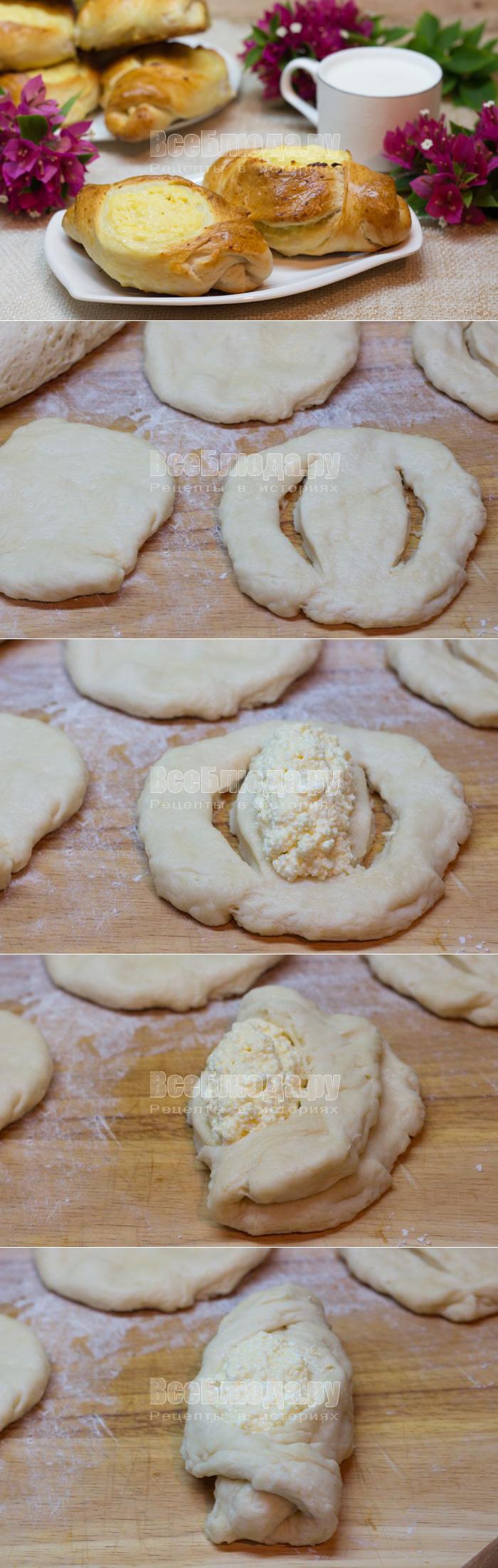 Булочки с творогом в виде лодочек (тесто без яиц), рецепт с фото | Все Блюда