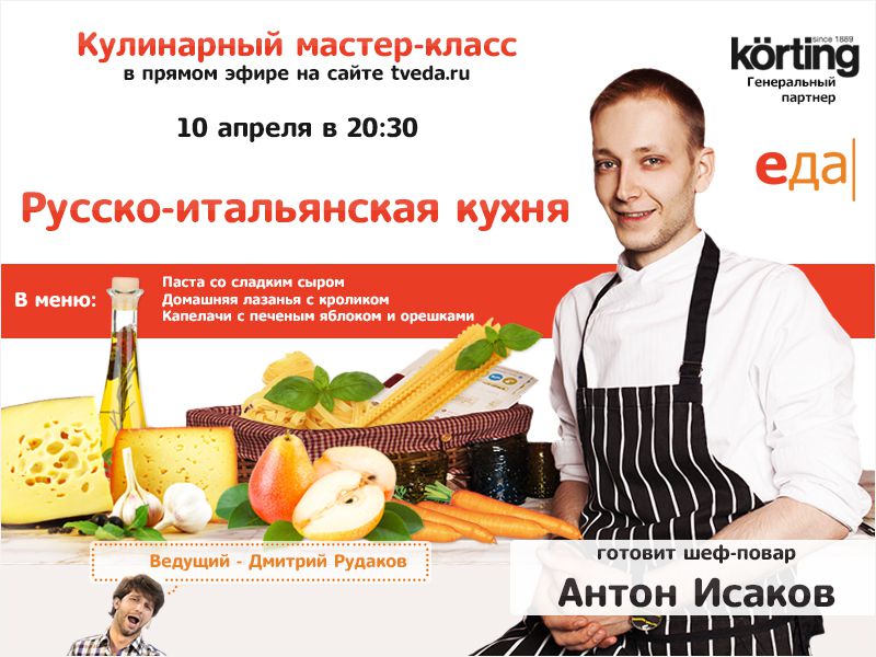 Мастер-классы в прямом эфире! 10 апреля в 20.30 готовим вместе с шеф-поваром Антоном Исаковым
