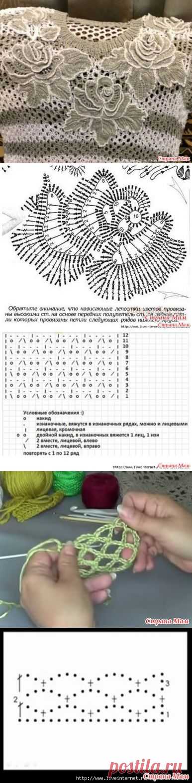 Шикарные розы_на кофте сеточке. Видео-уроки вязания сеточки. - Клуб рукоделия - Страна Мам