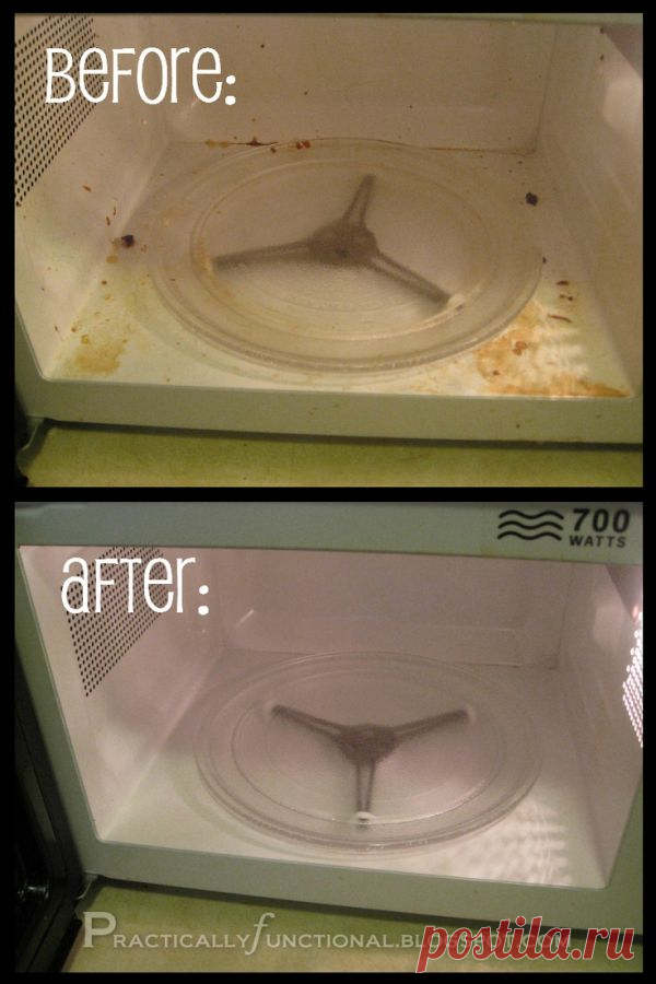 1-2 чашки воды / 1-2 столовые ложки уксуса положить в миску и поставить в микроволновую печь на 5 минут .... Протереть чистой тряпкой