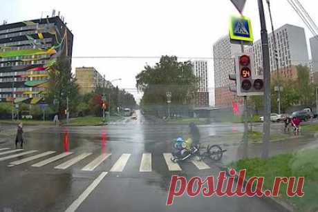 В Москве доставщик еды на велосипеде протаранил детскую коляску и попал на видео. В Москве доставщик еды «Яндекс» на велосипеде на большой скорости въехал в детскую коляску. Видео инцидента появилось в сети. На нем коляска отлетает на несколько метров и переворачивается, курьер также не может справиться с управлением велосипеда и падает рядом. Ребенка госпитализировали, а курьера задержала полиция.