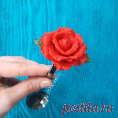 Десертная ложечка, украшенная розой из полимерной глины 🌹 Я влюбилась в нее пока делала😍 Делалась для комплекта с феей в платье из красных лепестков.