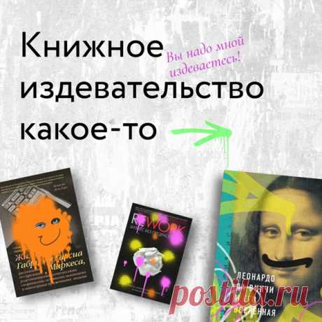 Это какое-то книжное издевательство ➠ mif.to/spinabelay Эти книги настолько суровы, что сами вас прочитают. Мы делали их в суровые времена. Маска не давала рассмотреть буквы. Перчатки не позволяли потрогать обложку. Книги не связаны логически, и наше издевательство не несет ответственности за их содержание. ⠀ Делитесь, какая из них так убийственно хороша, что вы отдали бы за нее последние деньги? Хотели продавать книги с наценкой, но не успели настроить сайт. Так что с 1 по 5 апреля - скидка…