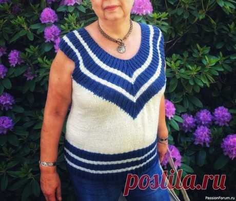 Топ-майка в морском стиле | Вязание спицами. Работы пользователей Связала летнюю майку или топ из норвежcкoй пряжи "Cotton medi" -100% хлопок (50гр/ 100м). Из хлопка вязала спицами впервые, не считая нескольких шапок. Вдохновением для меня стал МК на YouTube "Шикарный вязаный топ спицами " от Творческая мастерская. Эту идею я изменил на под...