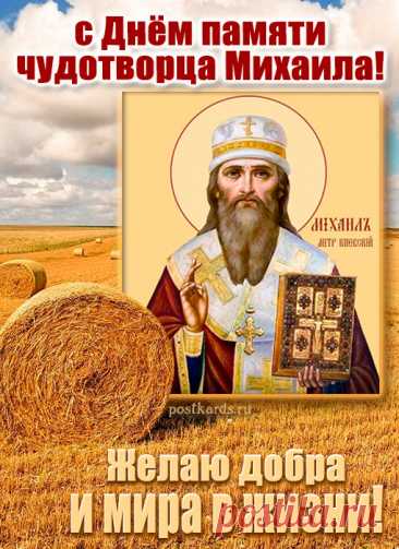 С Днем Михаила Соломенного! Пусть в этот день завершится всё, что нужно, и впереди будет только покой, уют и благополучие. В народе говорили, что Михаил помогает завершить осенние работы и подготовиться к зиме. Пусть всё в вашей жизни будет так же удачно! Открытки на День Михаила Соломенного.