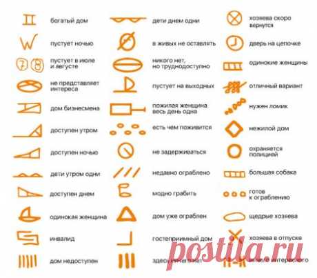 Пытаясь обмануть стражей порядка и законопослушное общество, преступники с каждым годом совершенствуются и придумывают всё новые уловки. Так, полиция Чили недавно обнародовала систему условных обозначений, которые осведомители воровского мира рисовали на дверях домов мирных граждан.В зависимости от того, легко ли ограбить дом, чем там ...
