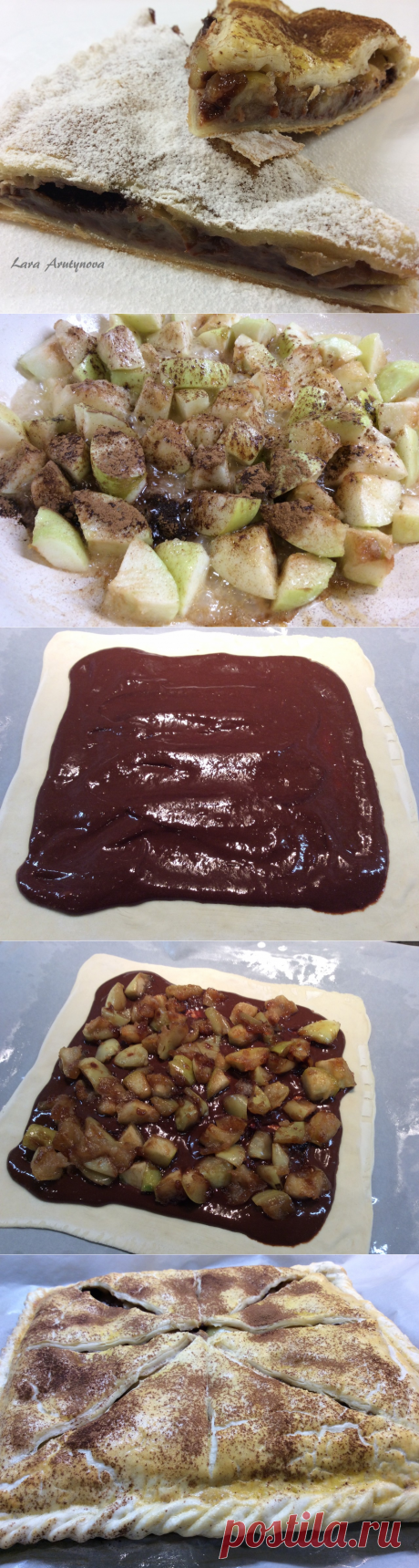 Питивье с карамелизированными яблоками и сливово-шоколадной нутеллой домашнего приготовления.