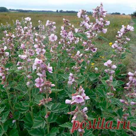 Лекарственное растение Алтей аптечный (Althaea officinalis). Многолетнее растение - 150 см высотой. Стебель с густым тонким войлочным опушением. Листья 3-5-лопастные,верхние скорее треугольно-яйцевидные и лишь слабо 3-5-лопастные с неравномерно-зубчатыми краями, с обеих сторон серо-зеленые и с шелковистым войлочным опушением. Цветки шириной 3-5 см белые, красноватые или красно-фиолетовые, пазушные, собраны в кисть; 5-9 наружных чашелистиков срослись у основания.