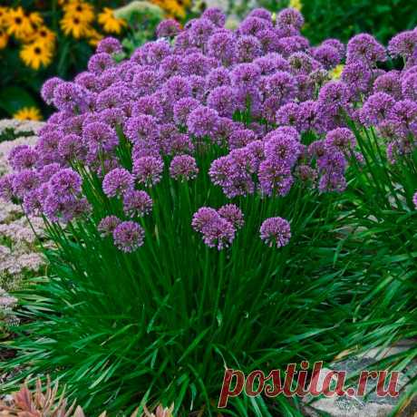 Многолетний садовый цветок Лук (Allium). Многолетнее травянистое луковичное или корневищное растение. Листья прикорневые, сочные, трубчатые, со специфическим запахом, длиной до 50 см, обладают фитонцидными свойствами. Соцветия зонтиковидные на безлистном цветоносе-стрелке. Цветки белые, розовые, пурпурные, желтые, фиолетовые. Цветут в зависимости от вида с конца мая до первых заморозков. Луковицы крупные - до 10-12 см в диаметре.