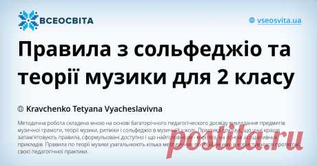 Правила з сольфеджіо та теорії музики для 2 класу Методична робота складена мною на основі багаторічного педагогіческого досвіду викладання предметів музичної грамоти, теорії музики, ритміки і сольфеджіо в музичній школі. Практика показує, що учні краще запам'ятовують правила, сформульовані доступно і що найголовніше - коротко, на основі асоціативних прикладів. Правила по теорії музики узагальнюють кілька методичних пособій, якими я користувалася протягом своєї педагогічної практики.