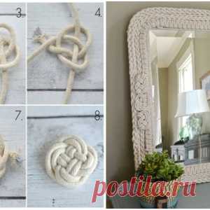 Такая рама для зеркала из плетеных веревок украсит и оживит любой интерьер