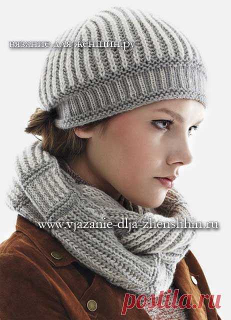 Модная шапочка и снуд в технике бриошь. Спицами. / www.vjazanie-dlja-zhenshhin.ru