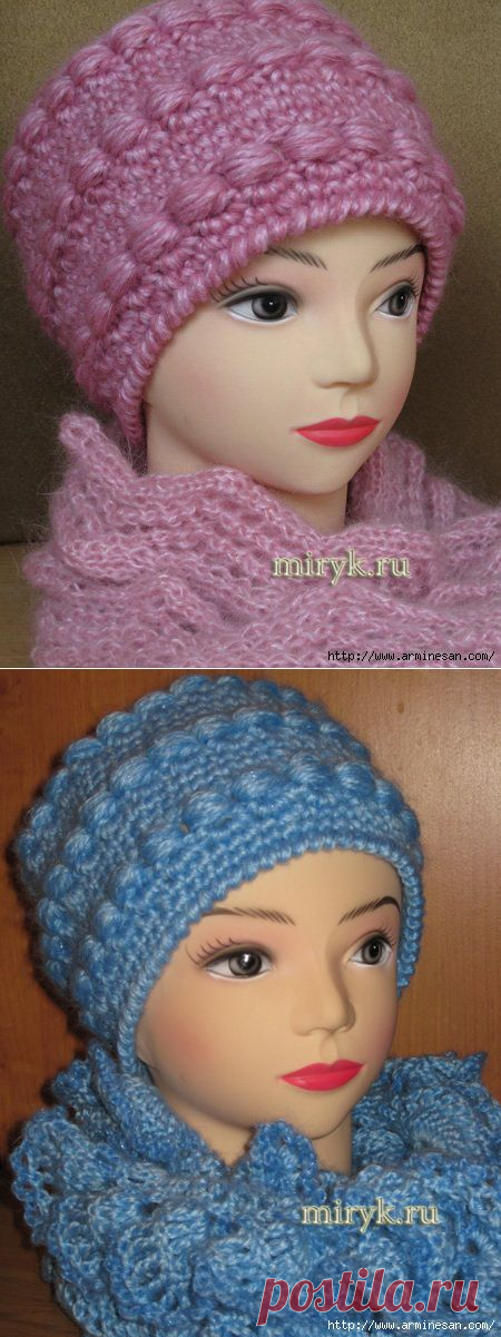 Шапочки женские *Ретро*связанные крючком + МК вязания поперечных рельефных полосок