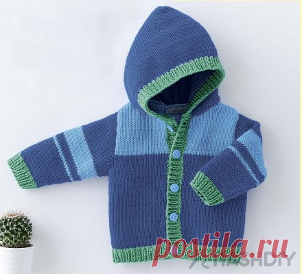 Вязаная кофта с капюшоном для малыша Вязаная кофта с капюшоном для малышаТакую кофточку можно связать как из хлопка, так и из шерсти, тогда ее можно будет носить в межсезонье.РАЗМЕРЫ3 (6) 12 (18) 24 месяца ВАМ ПОТРЕБУЕТСЯПряжа Phil Coton 4 (100% хлопка; 85 м/50 г) – 1 (2) 2 (2) 2 мотка лазурной (FAIENCE); 3 (4) 4 (5) 5 мотков