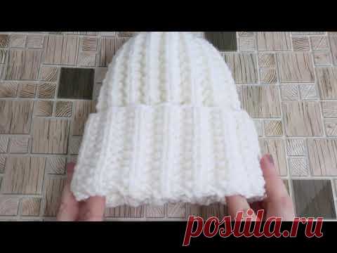 Шапка спицами с отворотом. С двусторонним узором.