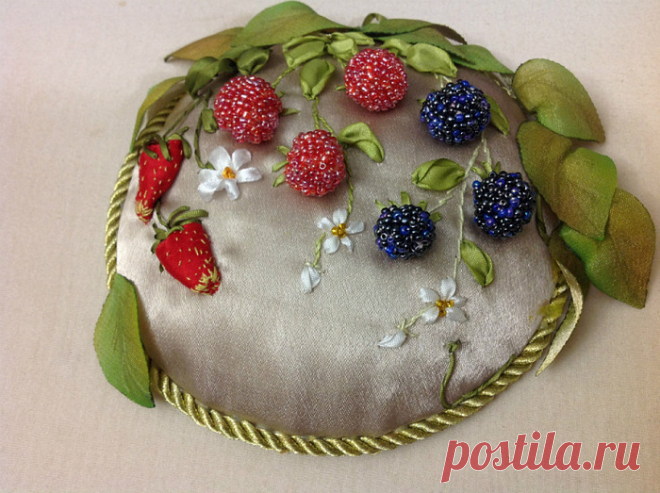 Практический урок по вышивке лентами - делаем тычинки. Оформляем вышивку | Своими руками