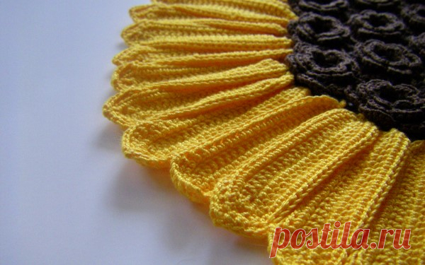УЧИМСЯ ВЯЗАТЬ ОБЪЕМНЫЕ ПОДСОЛНУХИ или ПОДУШКА-СИДУШКА. ПОДРОБНО.