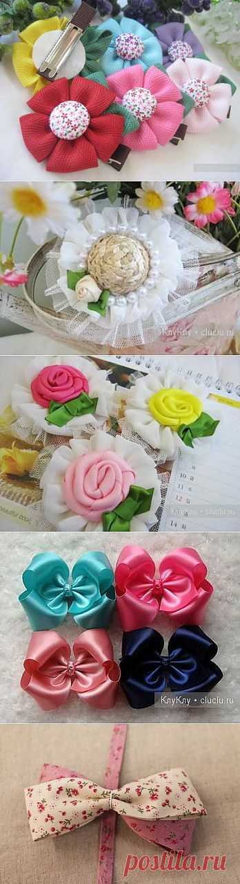 Заколки для волос своими руками для девочек - красивые картинки / Цветы из ткани, крючком, своими руками, мастер классы. Канзаши / КлуКлу. Рукоделие - бисероплетение, квиллинг, вышивка крестом, вязание