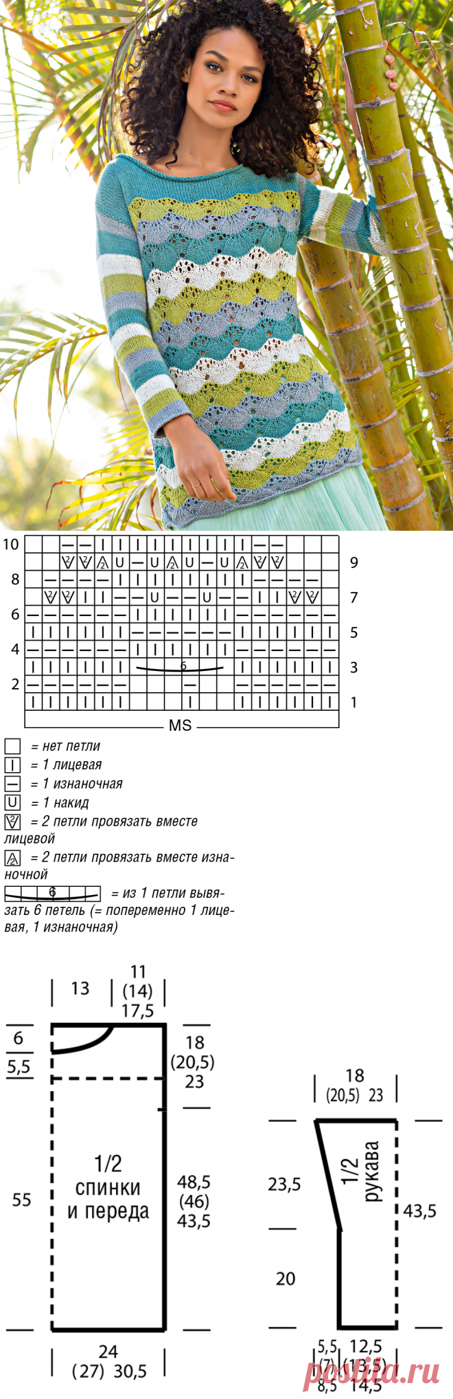 Джемпер в полоску с волнистым узором - схема вязания спицами. Вяжем Джемперы на Verena.ru