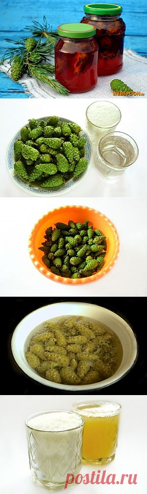 Варенье готовится только из молодых мягких зелёных шишек размером 2-4 сантиметра. Ориентировочно, на 1 кг шишек нужно 2,5 л воды (вода заливается просто, чтобы шишки покрыла, а в конечном итоге нужен расчет отвара и сахара). Отвар из сосновых шишек 250мл, сахар 1ст.